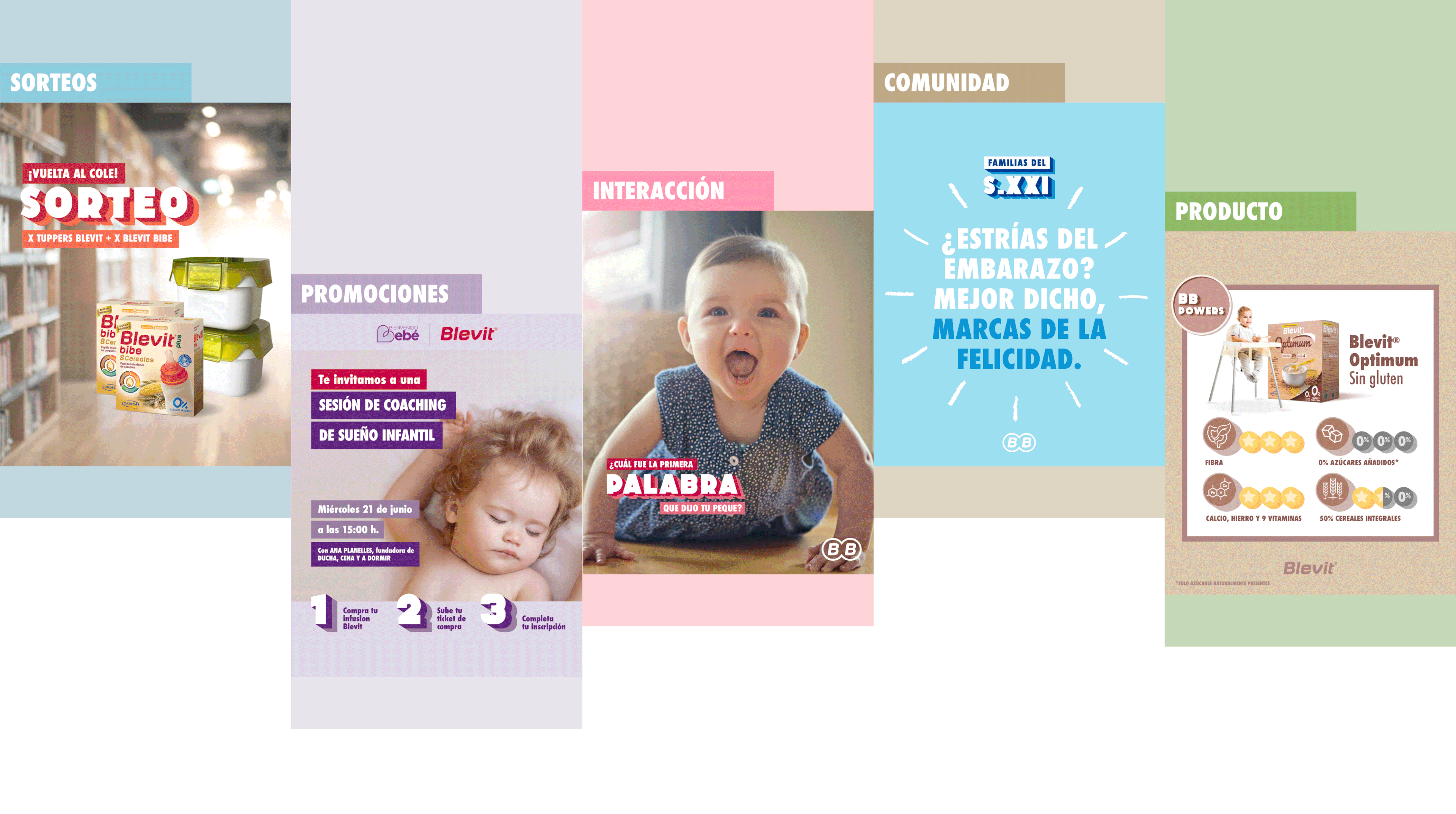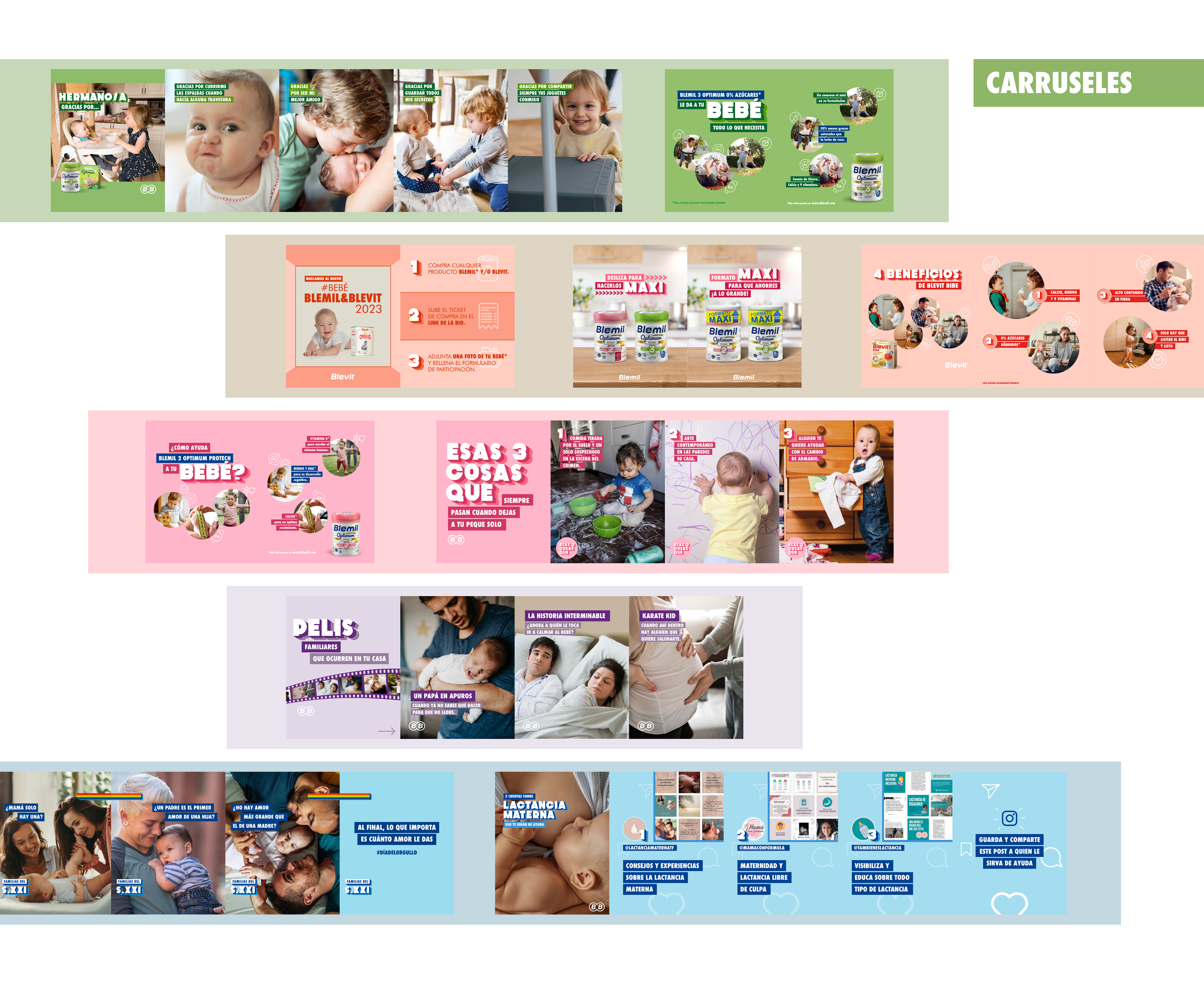 Diseño de redes sociales para BLEMIL Y BLEVIT, marca dedicada a leches, papillas e infusiones para bebés.