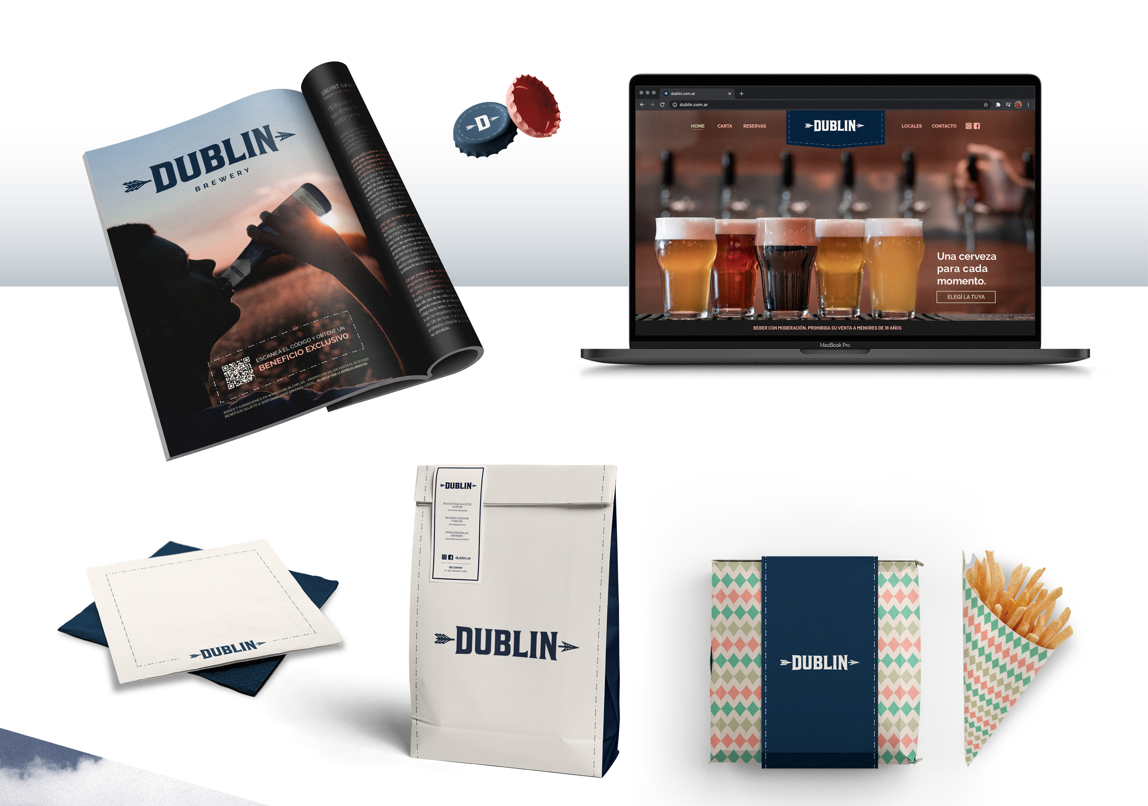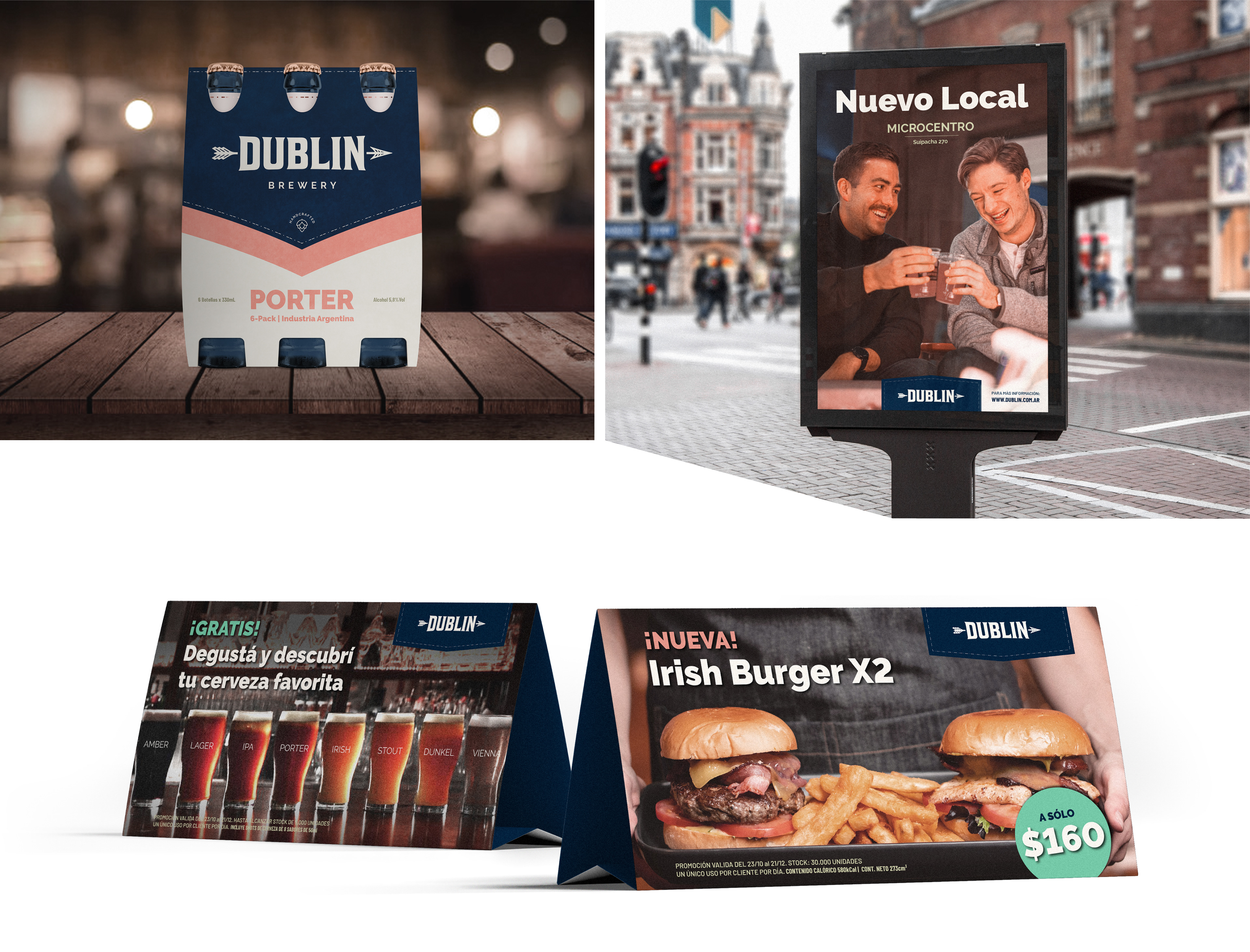 Branding design for "DUBLIN", a craft brewery chain with medium-sized establishments very well set and equipped, good quality beers and fast food service. Located in the competitive market of Buenos Aires.